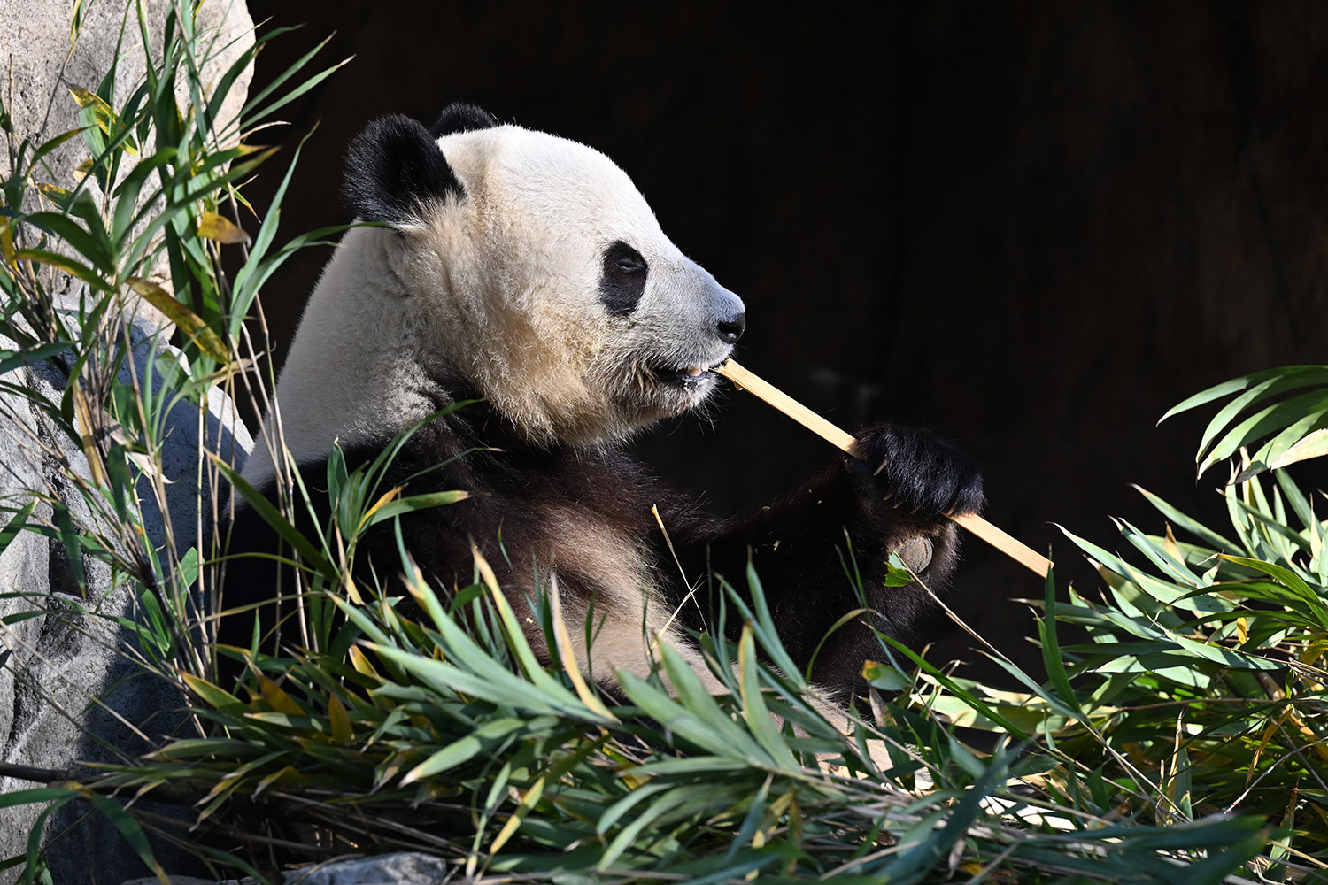 シャオシャオはたけのこをむしゃむしゃ。今日も大きな口を開けて、あっという間にぱくぱく。