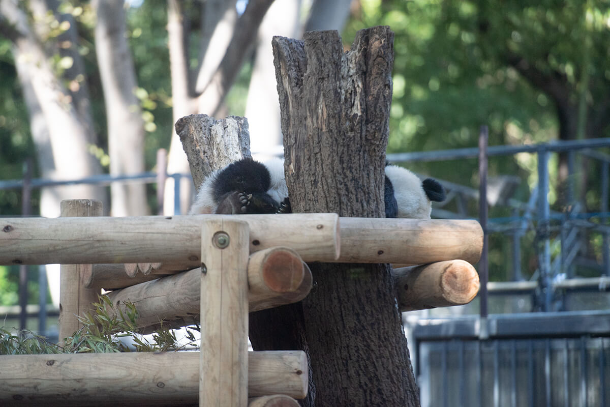 今日は2018年10月のシャンシャンから。櫓の上でお顔を隠してお昼寝中。(2018年10月12日撮影)